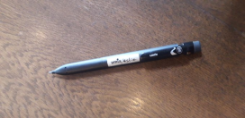 Mechanical pencil that has a tip like wood pencil. 0.x mechs break too e-z. This thing is like a rock