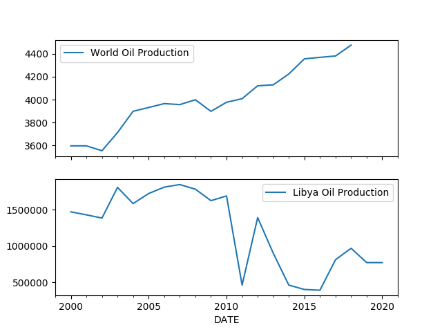 Below is oil production data for the world and Libya. Since 2011 Libyan civil war their production was hammered, but world production went upwards, unscatched. Clearly someone picked up the slack and that someone benefited.