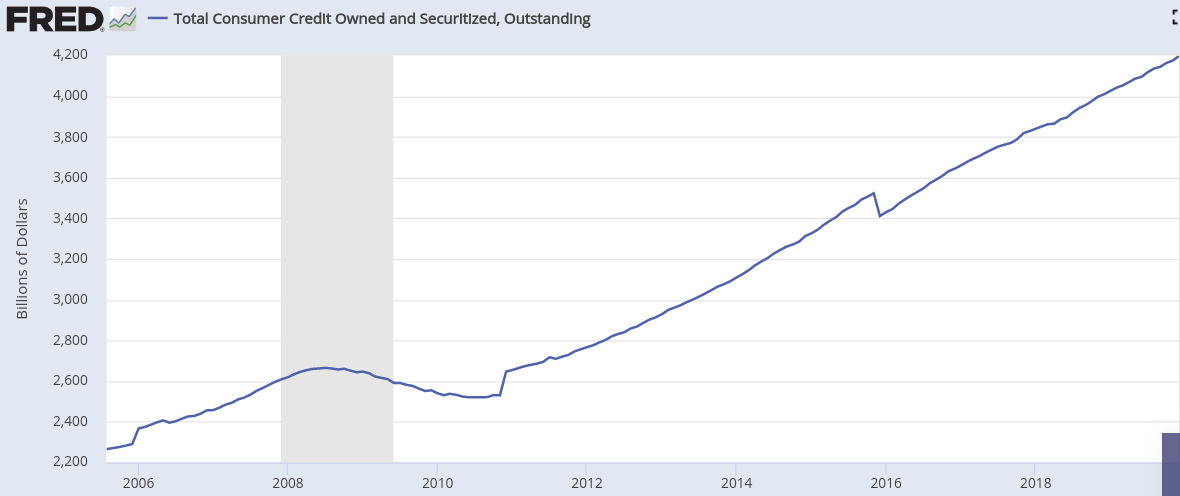 Credit card debt nearly doubled since the 08 crisis. Now it is over 4 trillion. Did ppl's income double? No.