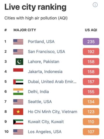 Current status: PM2.5 of 352 ug/m^3, or for you AQI fans out there, 402. If you prefer words from the EPA, simply "hazardous." I have never ever ever even seen CLOSE to this much smoke in the air. Anywhere. Ever. (And it is worse in places up and down the west coast).