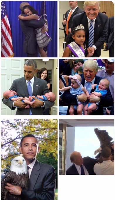 Was checking out some of my 2016 campaign shares; there was lot of "good Dem-bad Trump" takes, some are still good, here's one with Obama/Trump