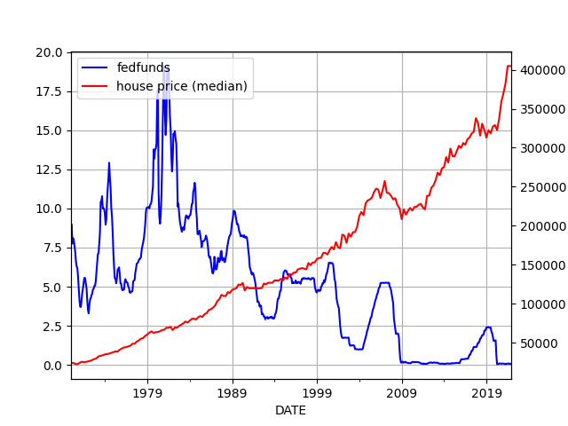 Another reason why low interest rates are bad, it inflates house prices. See graph,