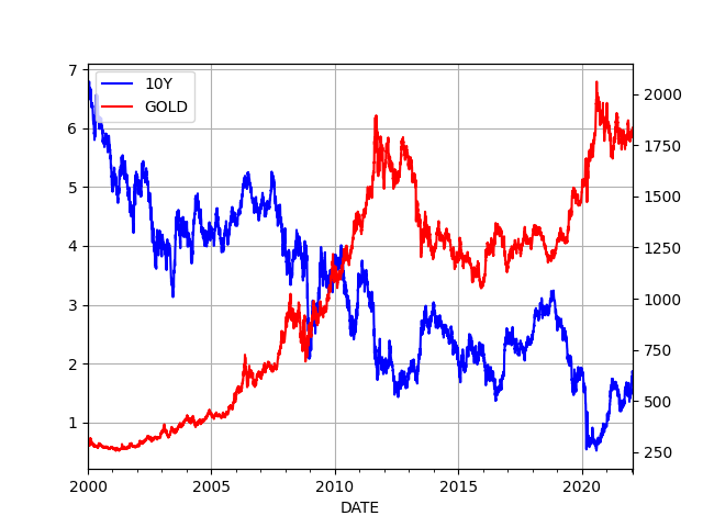 RT anchor talks about gold being a hedge against rising inflation. There is a reverse relation between the 10-year treasury (rates) and gold price. Gold has gone lower from its 2020 highs, not higher.