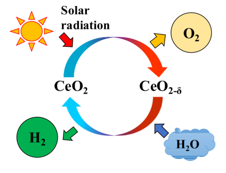 "Due to the inexhaustible magnitude and usability of solar energy, the solar-driven two-step water-splitting thermochemical cycle is generally considered a solution for hydrogen production from water.. Recently, CeO2 (cerium oxide) had received considerable attention as a potential reactive metal oxide"