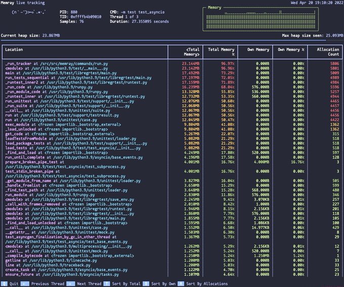 WOW. Bloomberg finally opensourced memray—a new versatile memory profile for Python. Can't way to use it"