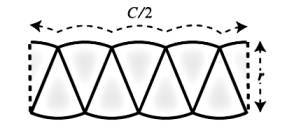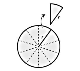 It approaches the area of a rectangle. We already know how to compute that, height times width, $C/2 r$, $C$ is circumference, $C = 2 \pi r$, area is $\pi r^2$. Boom.