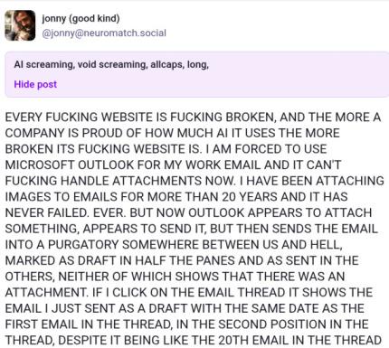 Reddit: "Slop pull request is rejected, so slop author instructs slop AI agent to write a slop blog post criticising it as unfair"