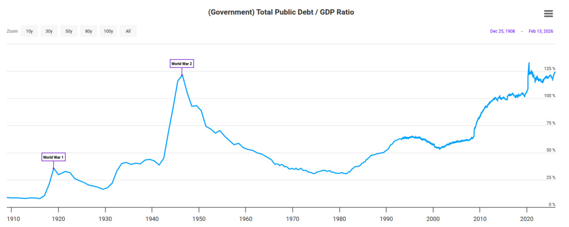 Debt to GDP now reached WWII levels.. One expert says gov wants to fix that, and via Warsh (plus Treasury) USG will have FED buy bunch of government debt on the cheap just like they did after the 50s Accord..