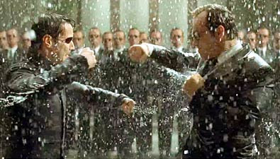 Holywood filmlerine bakarak akim savaslarini takip etmemiz mumkun olabilir mi? Sanayiciler ile bilgi toplumculari birbirleri ile hangi filmler uzerinden surtusmektedirler? Hangi filmler kime aittir?Mesela daha once bahsettigimiz Matrix filmini, tum trilogy'sine bakarak bir daha incelenmemiz uygun olabilir: Bu uclu set'teki ilk film, aslinda gercek surtusmeyi yakalayip kahramani ve kotu adami dogru hatlarda sectigi icin beyaz yakali yeni ekonomi bireyleri arasinda bu kadar begeni kazanmistir. Fakat bu begeninin boyutlarini filmin yapimcilari Wachowski kardesler bile onceden tahmin edememis olmalilar ki, radar altinda gelisen, finanse olan bu film bu kadar begenilince, ikinci akimcilarin Matrix II ve III'e el atmasi gerekti.Takip eden bu yeni filmlerde, Neo'nun sistem ile kavgasi yerine, karsi taraf ile Neo'nun arasindaki "baglantilar" ve "benzerlikler" islenmistir. Oyle ki, son filmin bitisinde ikinci akimi temsil eden makineler yokedilmeden birakilarak, bir baris havasi yaratilmis ve "ikimizin de birbirimize ihtiyaci var" havasi filmin bitis mesaji haline donusmustur. Buyuk bir ozenle Matrix I sonunda herkesin hayalini kurdugu "uykudaki insanlarin topluca uyanmasi" gibi bir kuvvetli sahne ve simge, bilincli bir sekilde seyircilerden uzak tutulmustur. Ve bu sasmis kurgu ve ana mesaji yuzundendir ki Matrix II ve III bizim grubumuz tarafindan hic begenilmemistir.
