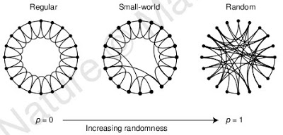 Çünkü rasgele yapılan bir saldırı büyük ihtimalle network'un daha az önemli bir noduna denk gelecektir, bu sebeple network daha dayanıklı (robust) bir hale gelmiş olacaktır. Bununla kalmıyor: Sınır yapısı biyologlar tarafından tamamen dekode edilmiş bir kürt (worm) tipi olan C. elegans'ın sınır yapısı yine tıpatıp İnternet'e benzemektedir! Bu sınır ağı da küçük dünya yapısındadır. Burada tekrar eden bir kalıp ortaya çıkıyor: Küçük dünya ağlarının ortaya çıkmasında rasgeleliğin bir faktör olduğu açık. C. elegans, aynen insan vücudu gibi, milyonlarca yıllık evrimin bir sonucudur ve evrim rasgele mutasyonalara dayandığı için herhangi bir kötü mutasyonun en az "küçük dünya ağlarına" zarar vermesi akla yatkın olmalıdır. Bu sebeple doğal seleksiyonda küçük dünya yapıları daha başarılı olarak üste çıkmış ve günümüze kadar bu sayede erişmiş olmalıdırlar. ---- [1] Sync, Strogatz, S., 2003 [2] Collective dynamics of small-world networks, Watts, Strogatz, Nature, 1998 [3] Bağlantı dağılım grafiği bu blogda daha önce bahsettiğimiz "uzun kuyruklu dagilim" yapısının ta kendisidir. Demek ki eğlence tüketiminde de benzer kalıpları bulmak mümkündür. [4] Halka şeklinde bağlı "normal" bir ağı, deterministik olarak küçük dünyaya çevirmenin algorıtması şudur: Her bağlantı teker teker gözden geçirilir her seferinde p olasılığında nodun bağlantısı koparılarak başka yine rasgele bir diğer noda bağlanır. Sabit p, 0 ile 1 arasındaki bir sayıdır, eğer p=1 ise ortaya çıkan tamamen rasgele (resimde sağda) bir yapıdır, ki bu küçük dünya değildir. p=0 ise tabii ki hiçbir şey değişmeden kalır. Resimde ortada görülen yapı, hem bağlılık hem de kümeleşme açısından en optimal olan küçük dünya yapısıdır.