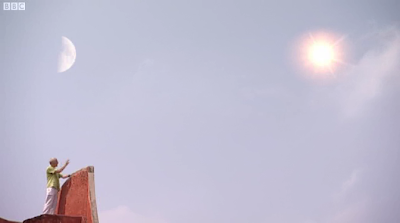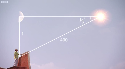 Programda Hindistan'daki matematiksel gelismeler anlatilirken guzel bir anektod paylasildi. Hintli matematikciler trigonometri bilgileri sayesinde, sadece aci bilgisi kullanarak, gunesin dunyaya olan uzakligini dogru sekilde olcebilmisler. Bu olcumun yapilabilmesi icin oncelikle ay yarim ay konumunda olmali, ki gunesten gelen isinlarin yansiyarak tam doksan derece acida dunyaya geldigi bir an olsun, boylelikle dik ucgenler hakkinda bilinenler devreye sokulabilsin. Baslibasina bu akillica bir gozlem/teknik.Bu noktadan sonra dunya ile gunes arasindaki aci olculuyor. Hintliler bu aciyi 1/7 derece olarak saptamislar. Bu bilgiyle dik acili bir ucgen kurgulamak mumkun; ve sinus, karsi bolu hipotenus demekse, o zaman 1/7 derecenin sinusu, gunese olan uzakligimizin aya olan uzakligimizin kac kati oldugunu soyleyebilir.Dereceden radyana gidelim, 1/7(pi/180), bunun sinusunu alip ve ters cevirelim, yani 1/sin(1/7(pi/180)) = 401 buluruz. Demek ki gunesin uzakligi, aya olan uzakligin 401 katidir (altta 400 gosteriliyor bu da yakin).Gercek rakamlari baska metotlar kullanarak artik biliyoruz: Bunlar aya 238855 mil, gunese 93000000 mil; Bolunce sonuc 389 kat. Fena degil!--[1] Kuresellesmenin dogru tanimi bu olmali [3]: Mesafelerin kisaldigi ve merkezin parcalandigi bir dunya.